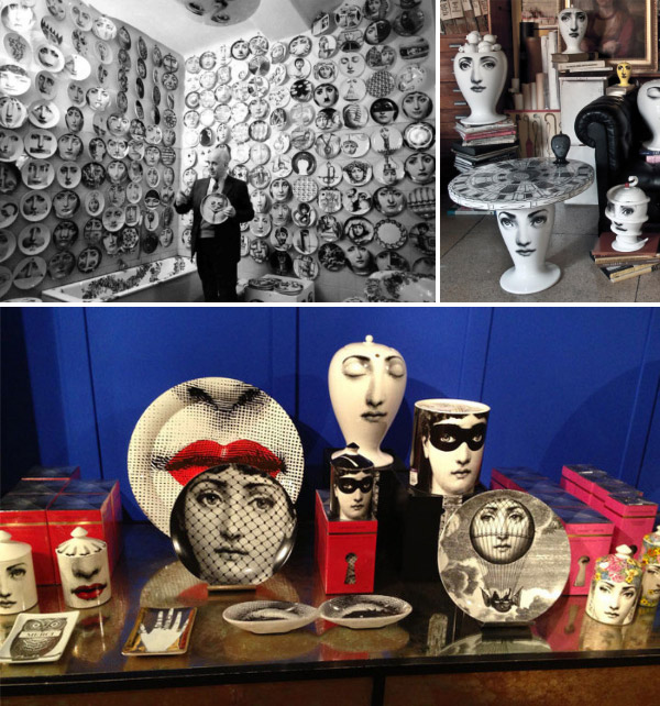 皮耶羅?佛納塞堤作品中著名的便是「Tema e Variazioni」系列,他將歌劇女伶 Lina Cavalieri 美麗迷人的臉龐,以超現(xiàn)實(shí)的拼貼組合,運(yùn)用在瓷磚、家具、餐具等家飾設(shè)計上。