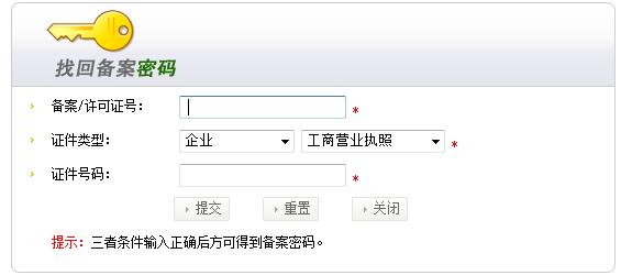 2、點(diǎn)擊右下角,找回備案密碼,選擇你所在地區(qū),這里我舉例的是我們山東省境內(nèi)的網(wǎng)站備案密碼找回: