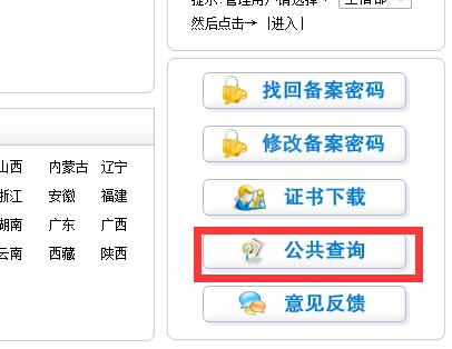 如果不知道備案許可證號(hào),在工信部備案首頁,右下角-公共查詢--輸入公司相關(guān)信息就可以獲取到,找回備案信息